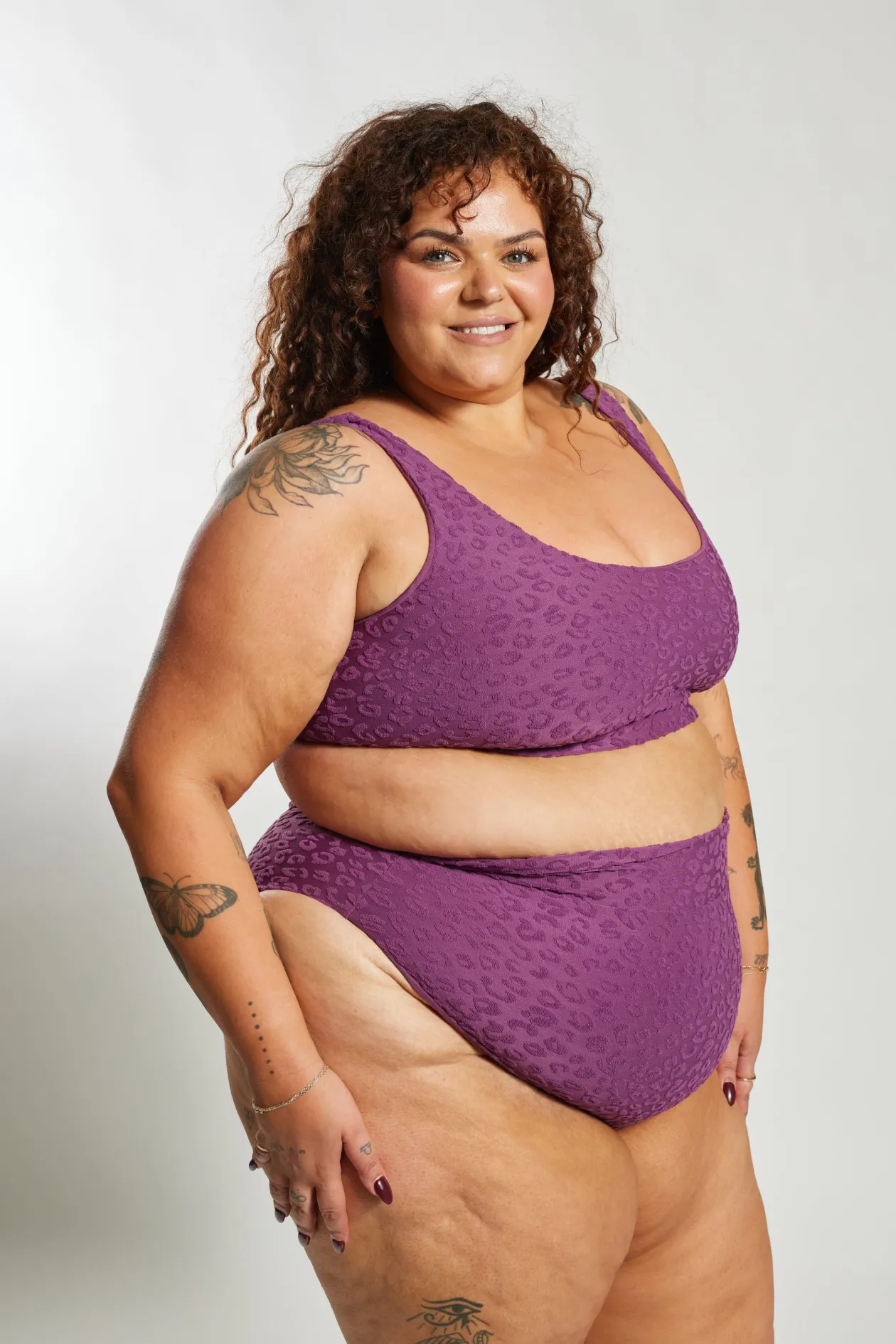 Flaunt your style with “Textured Leopard Grape” swimwear, featuring alluring grape purple leopard spots in a unique, textured design from Infamous Swim! 🍇🐆👙