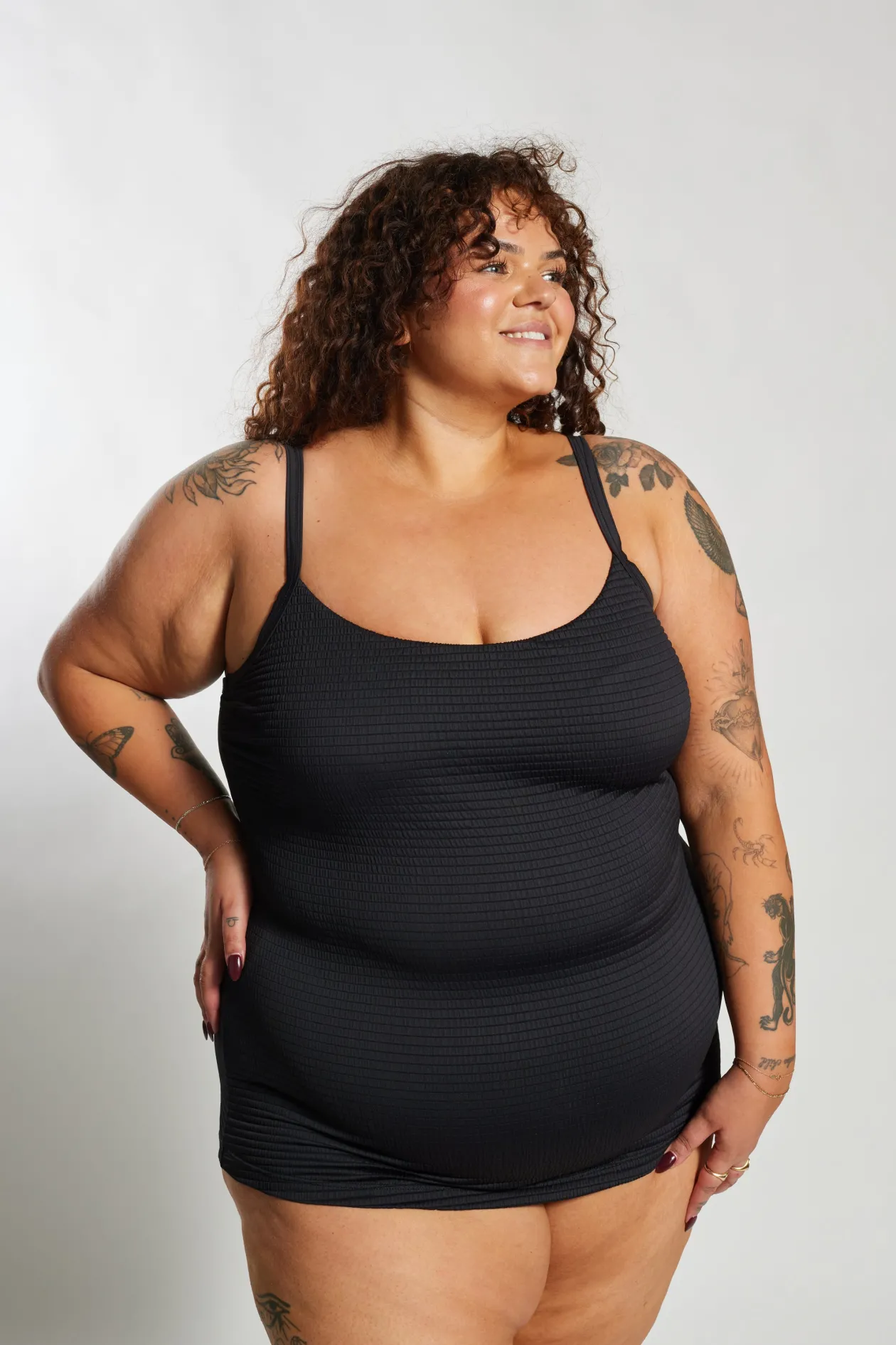 Embrace your beach confidence with “Black Runch” swimwear, featuring a unique ruched texture and mysterious black hue from Infamous Swim! 🖤👙✨