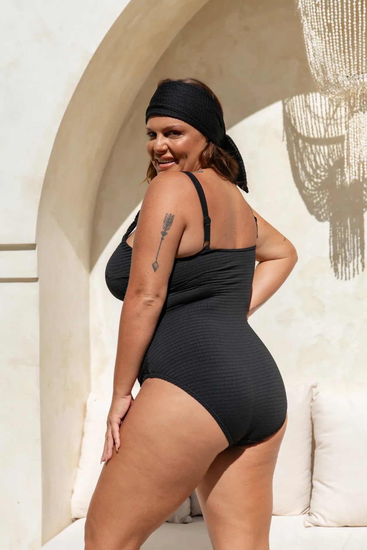 Embrace your beach confidence with “Black Runch” swimwear, featuring a unique ruched texture and mysterious black hue from Infamous Swim! 🖤👙✨