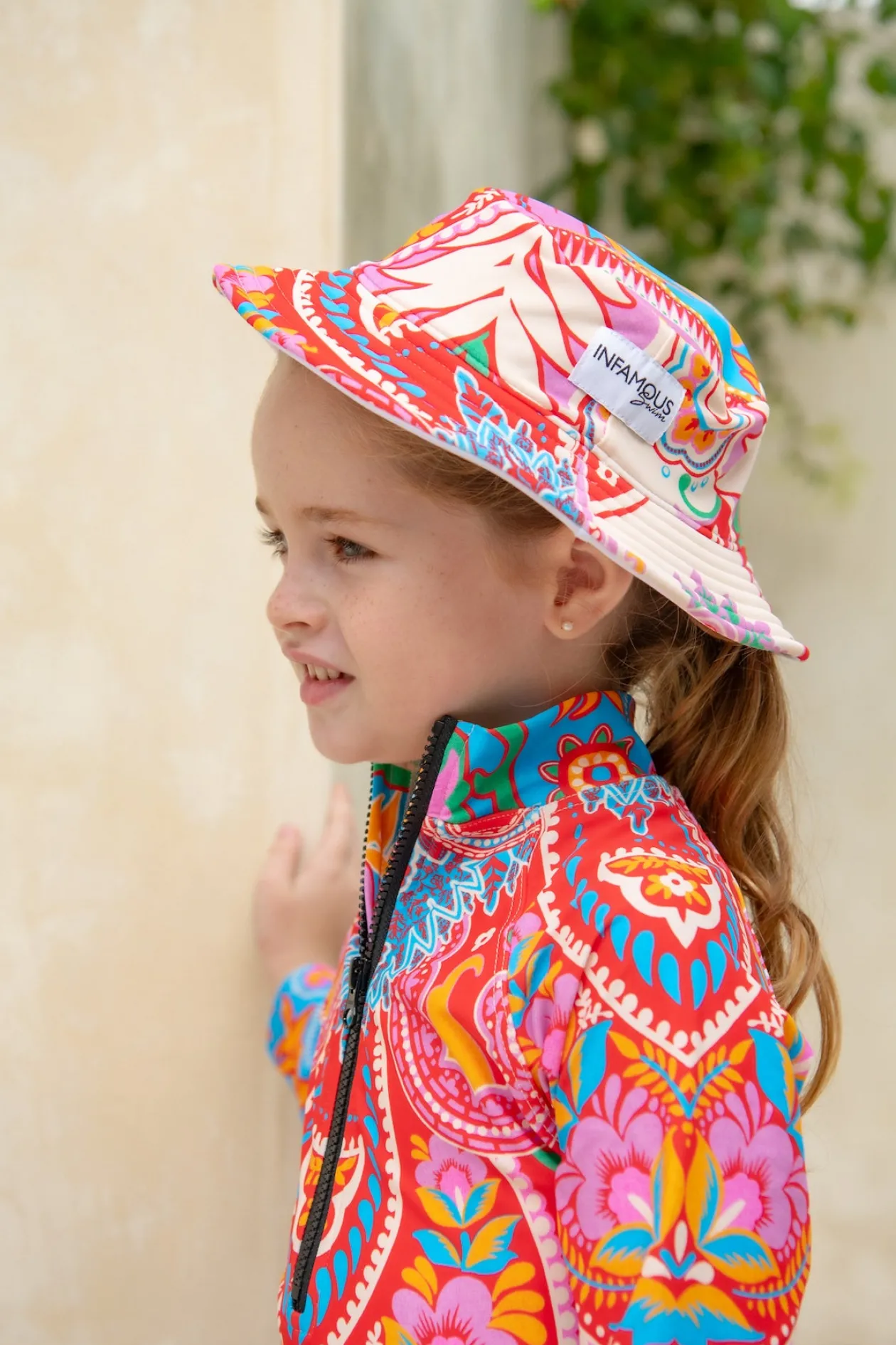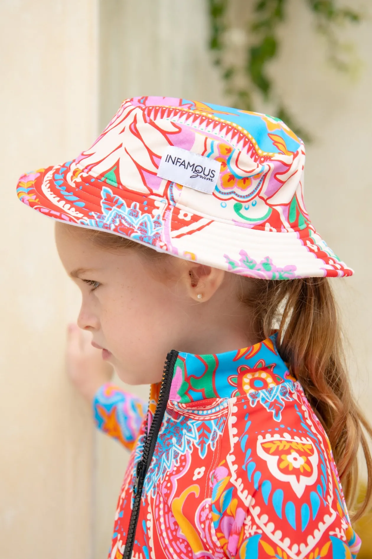The Daisy Hat is the perfect choice for your little ones to match back with their Infamous Carnival swimwear. Crafted in the same luxury Polyamide Spandex fabric as our swimwear, this hat is ideal for the pool and the beach. Features adjustable chin strap.