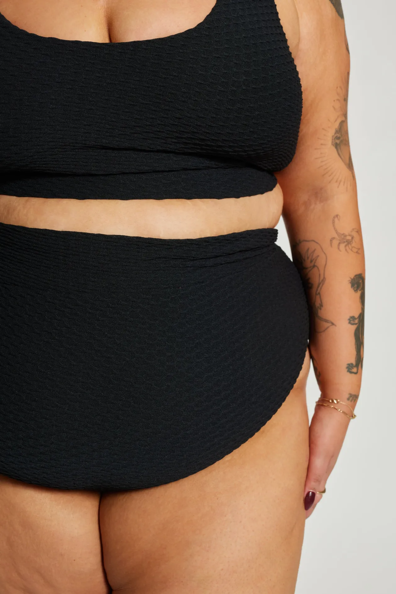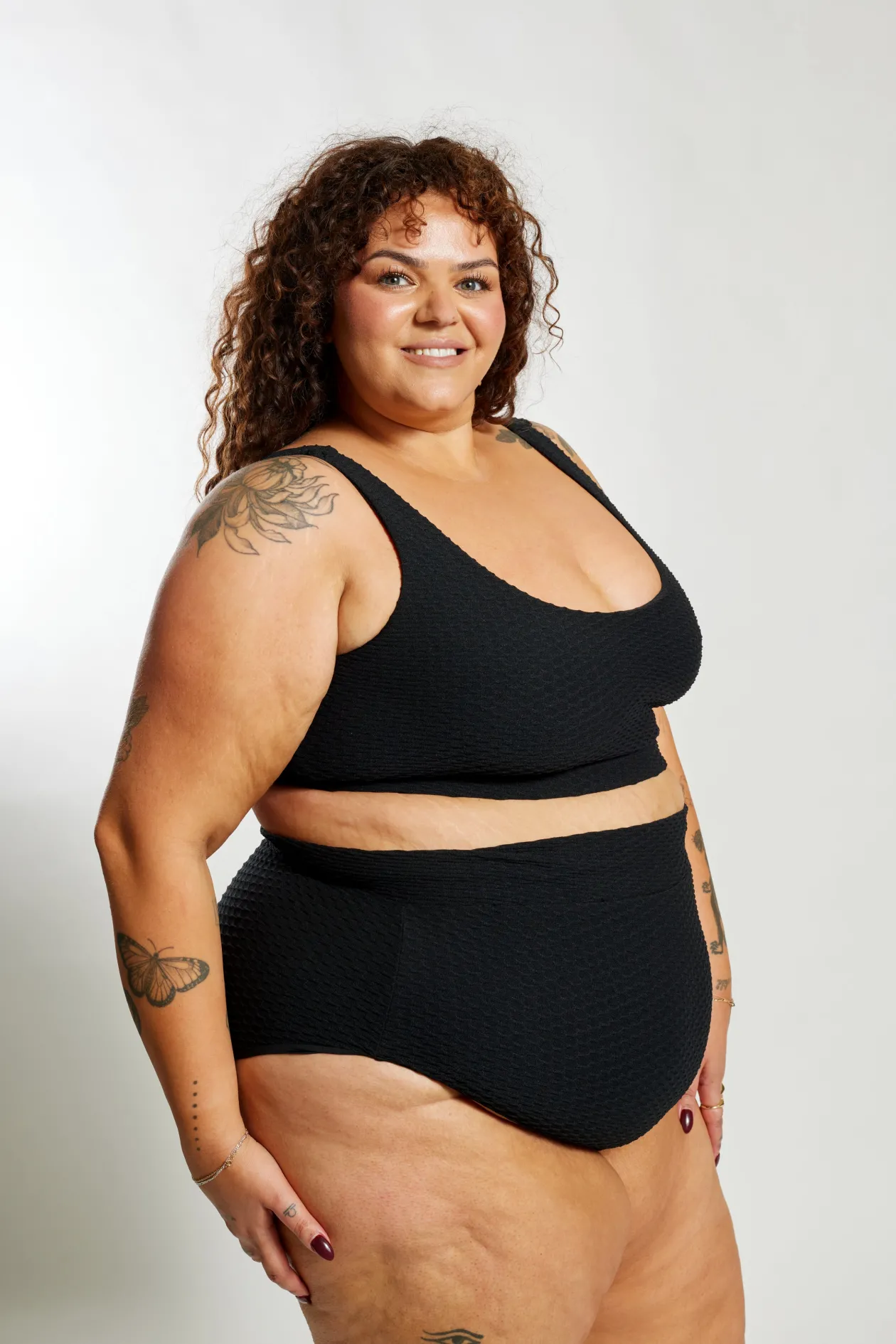 Black waffle is the bee’s knees! Crafted in our new honeycomb textured fabric, Black Waffle takes black swimwear to a whole new level of chic.