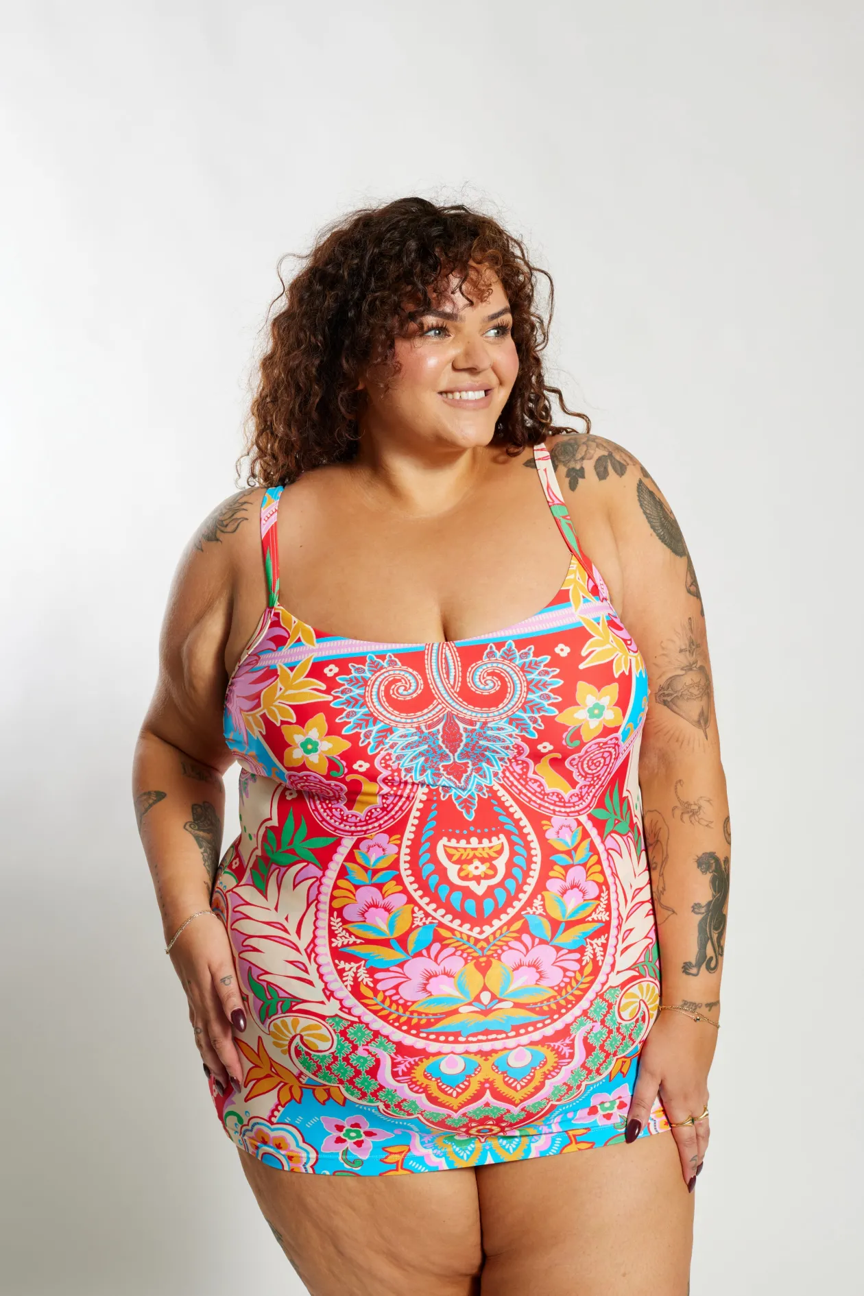 Channel the free-spirited boho vibes of summer with our Infamous Carnival swimwear print, inspired by enchanting oriental blooms and a kaleidoscope of vivid hues. Let it infuse your beach moments with exotic mystique, painting the sands with your own unique palette of confidence and grace.