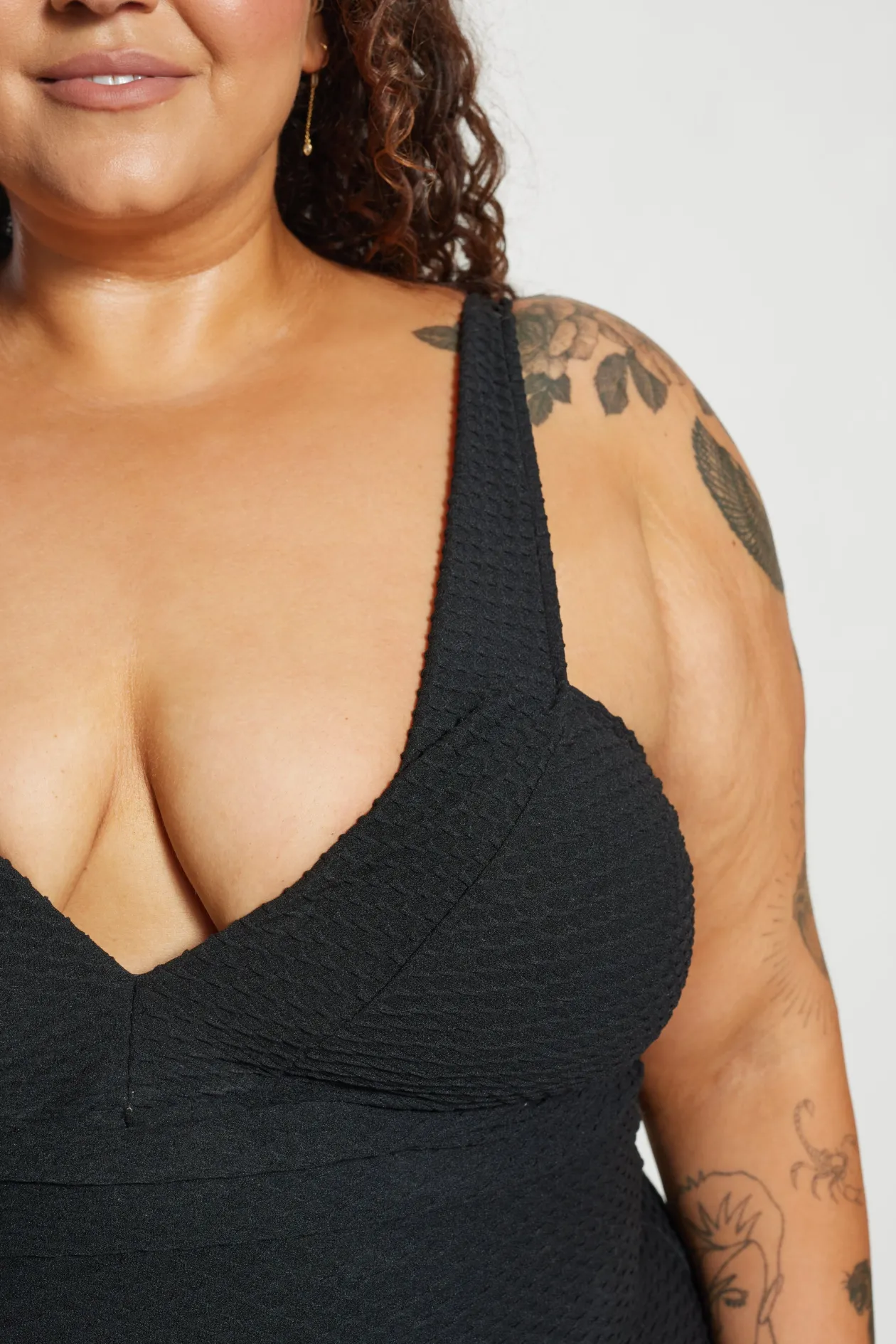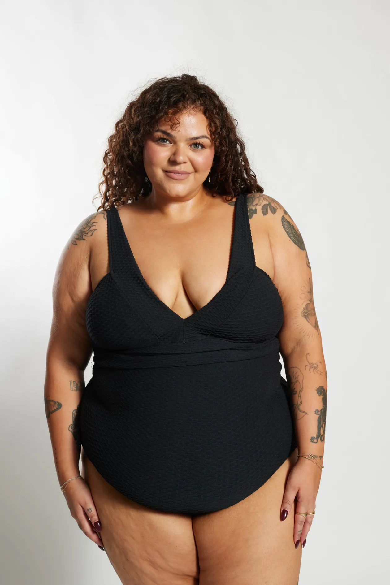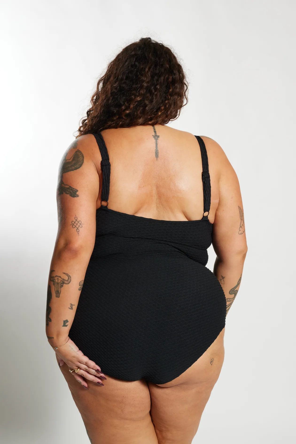 Black waffle is the bee’s knees! Crafted in our new honeycomb textured fabric, Black Waffle takes black swimwear to a whole new level of chic.