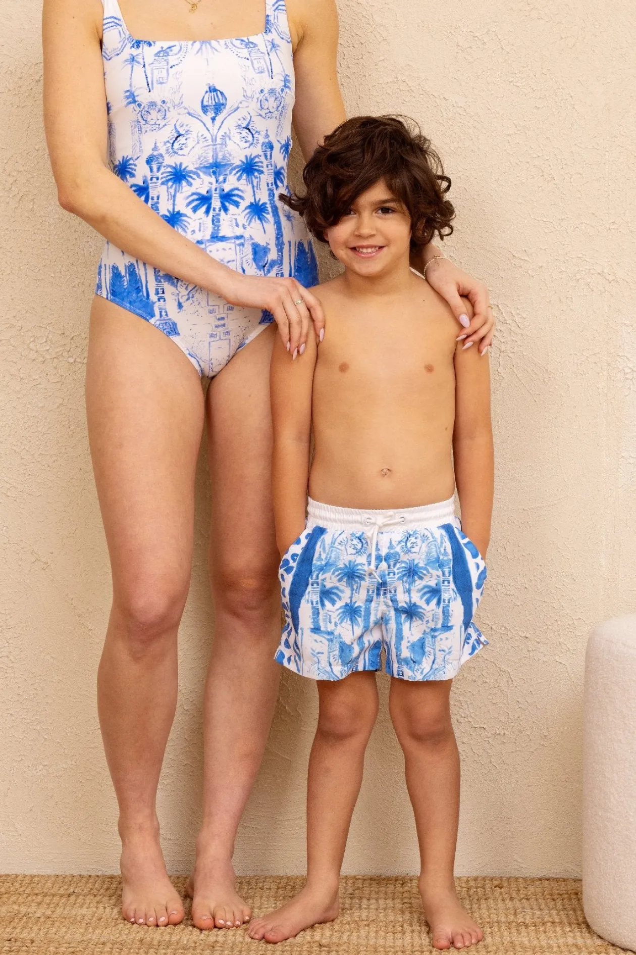 The Mini Hank Boardshorts are the matching boys’ edition of our Men’s Hank Boardshorts, featuring mid-length leg, elastic waistband with functional drawstring, all in quick-dry Polyester.